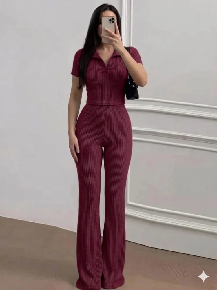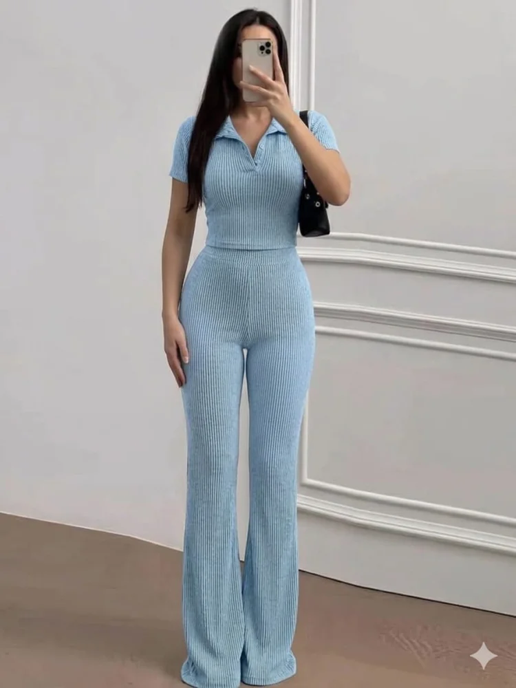 سيت قطن ريب اجنبي موديل لاكوست بلوزة وبنطال